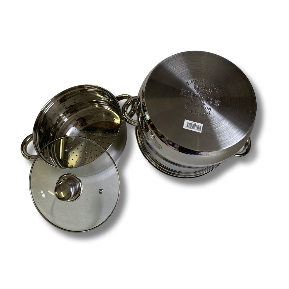 Le couscoussier Espace Cuisine est un ustensile indispensable pour les amateurs de couscous. Fabriqué en inox de haute qualité, il est disponible en différentes tailles (4L, 6L, 8L et 12L) pour s’adapter à toutes les familles.