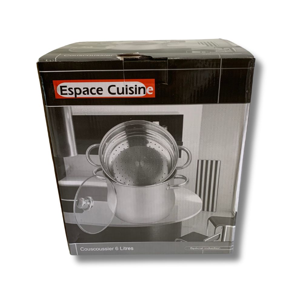 Le couscoussier Espace Cuisine est un ustensile indispensable pour les amateurs de couscous. Fabriqué en inox de haute qualité, il est disponible en différentes tailles (4L, 6L, 8L et 12L) pour s’adapter à toutes les familles.