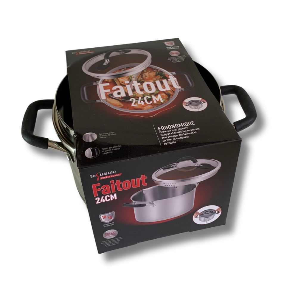 Le faitout Te Cuisine 24cm est un ustensile polyvalent pour toutes vos préparations mijotées, bouillies ou braisées. Fabriqué en inox de haute qualité, il assure une cuisson homogène et une grande durabilité.