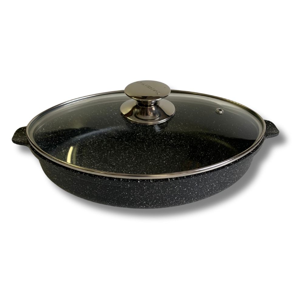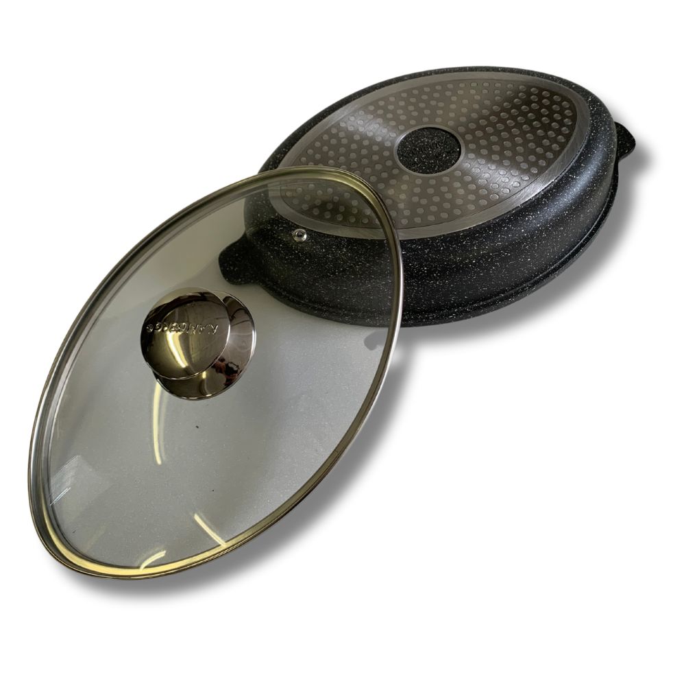 - Revêtement effet pierre 5 couches: Le revêtement antiadhésif effet pierre, enrichi en particules minérales, assure une cuisson douce et homogène, idéale pour les mijotés, et un nettoyage facile.