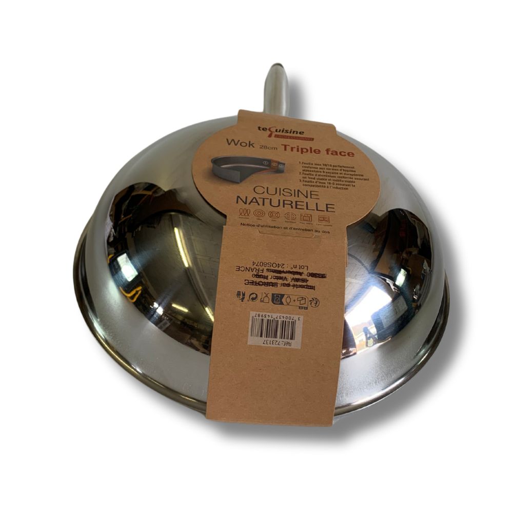 Wok 28cm Te Cuisine Professionnel en inox, sans PFAS, PTFE, PFOA, pour une cuisine saine et polyvalente.